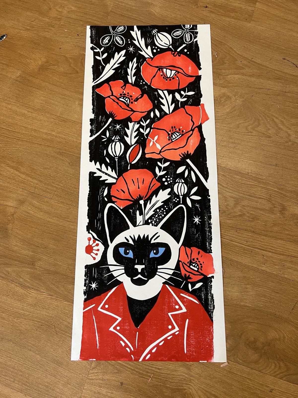 Estampe Siamois aux Coquelicots